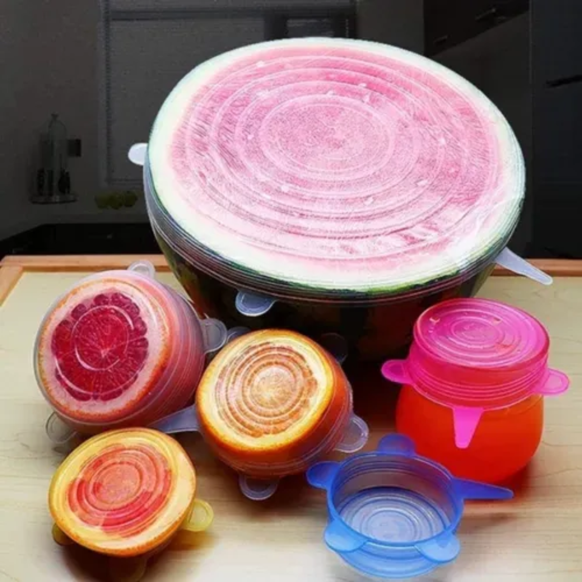 Set x6 Tapas de Silicona Reutilizables que se ajustan a casi cualquier recipiente. ¡Práctico, ecológico y económico!